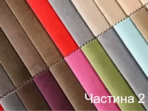 Штучна замша або велюр – популярний матеріал для оббивки м’яких меблів. Через високу зносостійкість його часто можна зустріти не лише на домашніх меблях, а й офісних. Штучна замша – більш комфортна на дотик за натуральну шкіру, але потребує регулярного очищення від пилу.